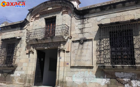 El Museo de Arte Prehispánico de México Rufino Tamayo, abrió sus puertas al público el 29 de enero de 1974. Desde muy joven, al inicio de sus actividades como pintor Rufino Tamayo había entrado en contacto con las manifestaciones artísticas prehispánicas que le sirvieron de inspiración a lo largo de toda su vida. Para eso, a su solicitud, el Gobierno del Estado le hizo la donación de un bellísimo edificio de la época virreinal, el cual Tamayo mandó restaurar y con la ayuda del eminente museógrafo mexicano Fernando Gamboa, adecuar como museo para recibir en él, de una manera profesional y artística, la hermosa colección. La colección quedó repartida en cinco salas, puntada cada una con un color diferente, elegido por Tamayo.