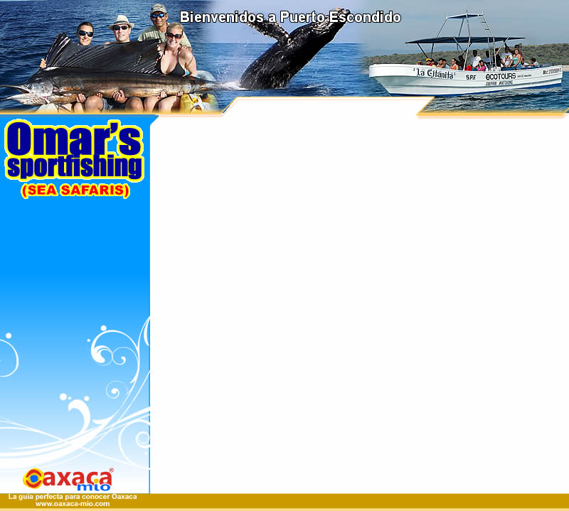 Puerto Escondido, es conocido como un pueblo de pescadores. Las excursiones de pesca deportiva de Omar son bien conocidos, y ofrecen una experiencia única.