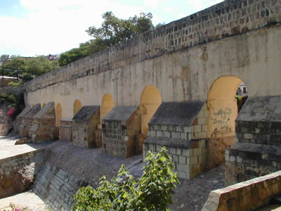 Descripción Es una parte de lo que fue el antiguo acueducto de San Felipe del Agua, construido con muros y arquerías de cantera y ladrillo, a mediados del siglo XVIII. Dicha obra fue financiada por Juan G. Márquez, Manuel Landeta, José Sánchez y Juan de Pascua y Obrien. Tuvo gran importancia en su época; entre otros beneficios, mejoró las condiciones de la población, aumentaron los servicios en los templos y conventos, y hubo más fuentes y jardines. El abandono, las invasiones y desastres, los hicieron insuficientes, aún cuando se traía agua por el acueducto de Huayapan. No obstante, siguió funcionando hasta mediados del presente siglo, en que fue sustituido por la tubería de fierro. |