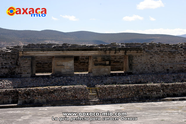 En los edificios norte y oriente se encuentran las más bellas tumbas, donde eran enterrados los sacerdotes y los reyes zapotecas; en el primero, frente a la escalera, está la entrada de una tumba cruciforme, con antecámara; el techo tiene grandes dinteles de piedra monolítica y los muros están decorados con tableros y mosaicos de grecas; el del oriente se caracteriza por una columna de piedra monolítica que sostiene el techo.