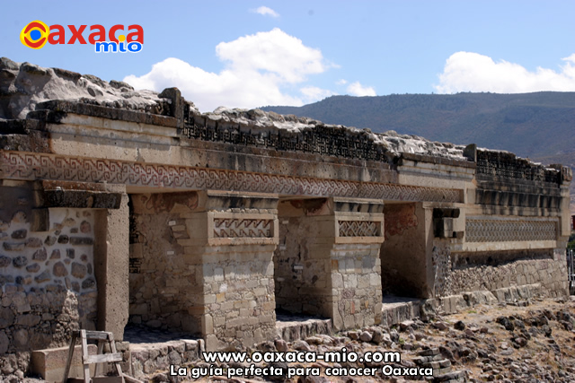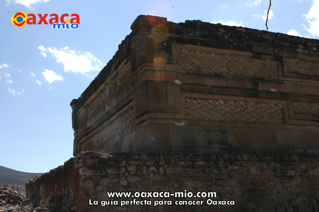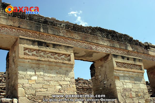El mayor atractivo de la zona arqueológica de Mitla es sin duda, la variada ornamentación de sus edificios, lograda mediante el sistema de grecas que la distingue de las del resto del país.