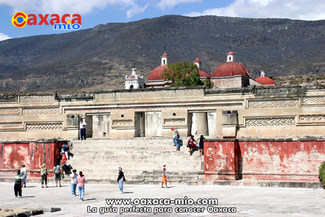 Principal centro ceremonial después de Monte Albán, la palabra Mitla o Mictlán es de origen náhuatl y significa "Lugar de los Muertos" o "Inframundo" en zapoteco se llama "Lyobaa" que significa "Lugar de entierros", el cual ya en mexica quedó en Mitlan, "lugar de muertos" y ya españolizado sólo Mitla.