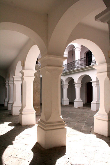 HISTORIA DEL EDIFICIO En la esquina de las calles de García Vigil e Independencia se ubica un edificio del siglo XVII, de arquitectura sobria, construido con cantera verde y altura mesurada como el resto de los inmuebles de Oaxaca. Se edificó bajo la iniciativa del licenciado y sacerdote Don Juan Gómez de Tapia, cura de Tututepec y del filántropo portugués Don Miguel Fernández Fiallo, quienes donaron una fuerte cantidad de dinero para la realización de esta obra, cuya finalidad era dar educación a las niñas oaxaqueñas sin discriminación alguna, por raza o por condición económica. Bajo auspicios del Obispo Don Isidro Sariñana, en el año de 1700 puso este espacio educativo al servicio de la mujer oaxaqueña con el nombre del Colegio de Doncellas de Nuestra Señora de la Presentación (o Colegio de las Niñas), el día 26 de enero de 1686. Posteriormente, por las leyes de Reforma, el Colegio fue clausurado, dejando de funcionar en 1860; ya en el periodo el Gobierno de Don Porfirio Díaz reabrió sus puertas en 1866. uchos y variados han sido los usos que ha tenido este inmueble a lo largo del tiempo. Fue utilizado como Museo de Antropología e Historia, también funcionó como Museo Regional del estado, después se instalaron las oficinas del Ayuntamiento de la ciudad de Oaxaca, dejando el inmueble en 1992; de 1993 al 2003 albergó las instalaciones de Secretaría de Turismo. El edificio cuenta con un pórtico de acceso que se abre a un patio delimitado por columnas cuadrangulares que anteceden a las crujías perimetrales. Como remate de este patio se encuentra una escalera con dos recorridos para llegar al segundo nivel de este edificio. Con largos y rítmicos pasillos se conduce a las salas perimetrales, algunas con reminiscencias religiosas. En la parte posterior del edificio se encuentra un segundo patio con diseño más modesto que el primero. espués de la rehabilitación de las salas de lo que fue el Colegio de las Niñas, el inmueble recobró la belleza y majestuosidad perdidas.