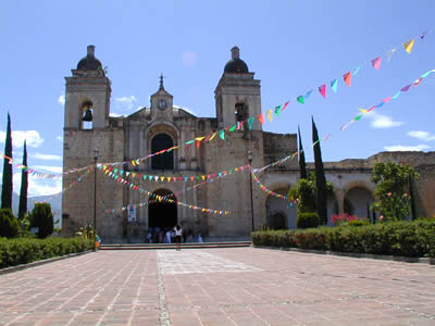 Las fachadas principales del templo y el ex-convento están