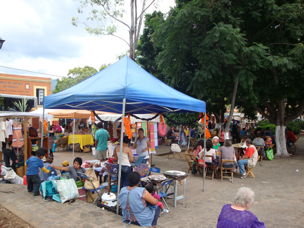 Teotitlán del Valle La iniciativa de conformar un mercadito de esta naturaleza surgió como un compromiso a la sociedad oaxaqueña para ofrecerles productos de mayor calidad, orgánicos y con una pureza mayor a la que se consigue en otros establecimientos. Ya después se fueron anexando vendedores que además de vender también productos orgánicos agregaron internacionalización a los productos, ya que se puede conseguir desde repostería francesa hasta comida italiana.